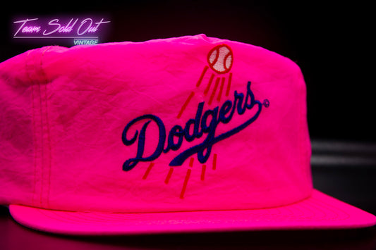 Vintage American Needle Pink Nylon Los Angeles Dodgers Plain Logo Snapback Hat MLB